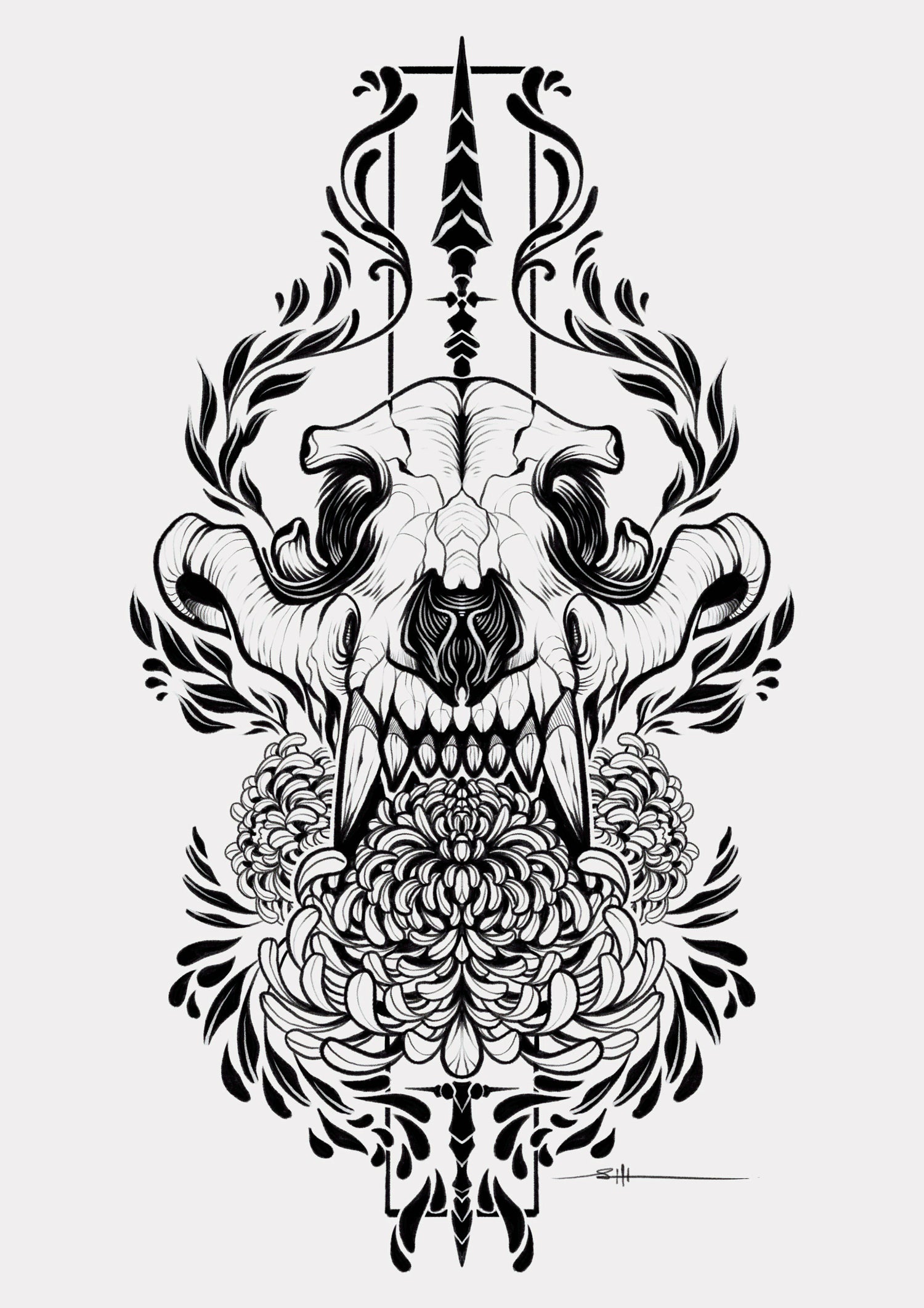 Tattoo commissions are provided at a lower rate due to them typically being a simpler designs with less details and ultimately, less time intensive. If you are looking for something more detailed, then please scroll down to my illustrative works. Tattoo commissions are available in line-work, black and white, or full colour. Prices displayed are base price and are subject to change depending on the area of the tattoo, size and complexity. Please send me an email or fill out the form for an accurate quote.